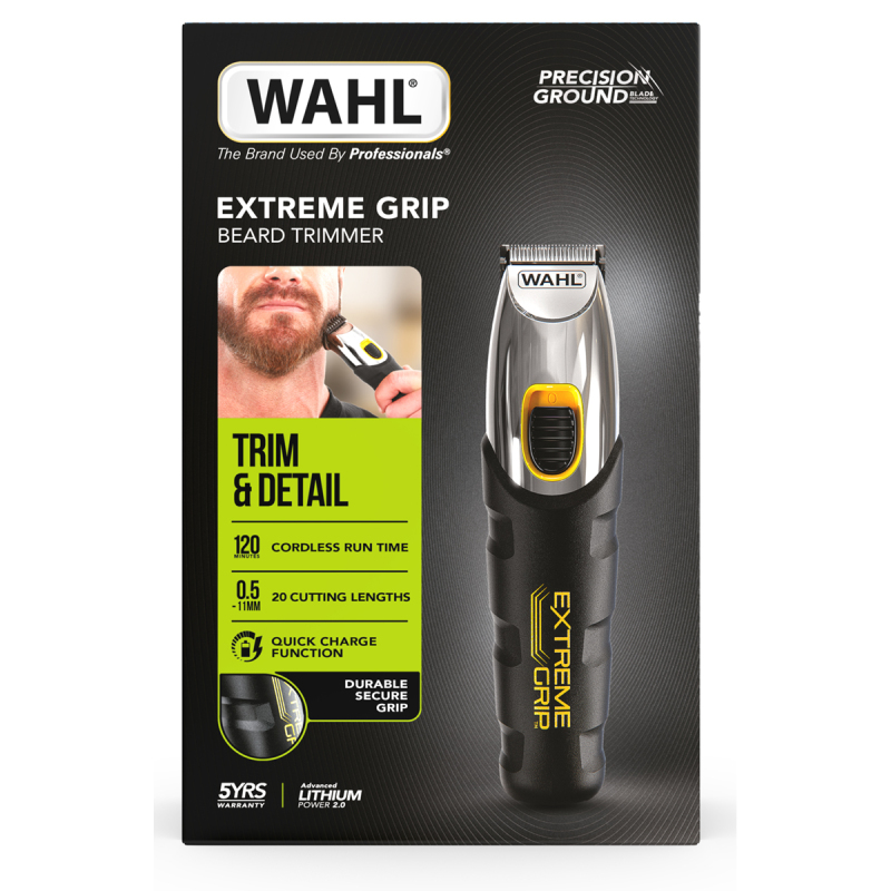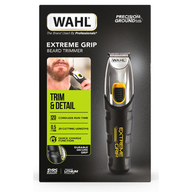 The Wahl Extreme Grip Beard and Stubble Trimmer provides secure grip and ergonomic ease with durable silicone housing.