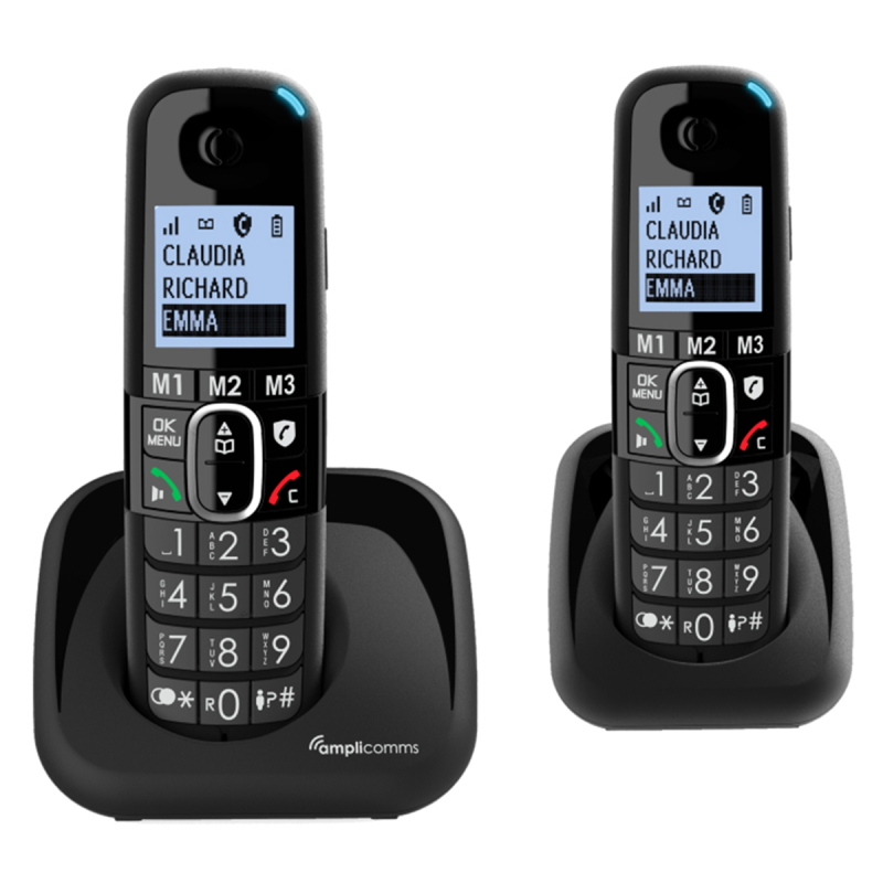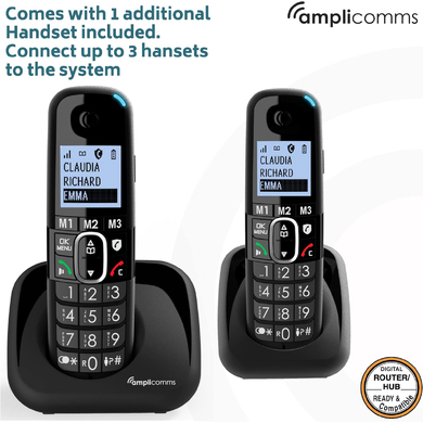 BigTel 1502 Twin Digital Cordless Phone with Amplified Audio - Black