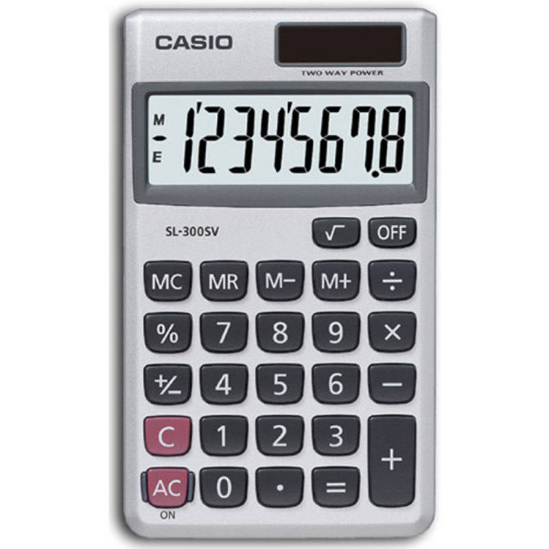 Casio SL300SV-WK, Pocket Calculator 8 Digit Display