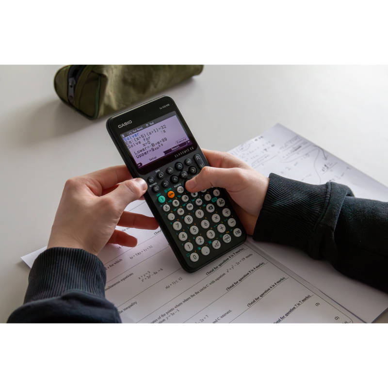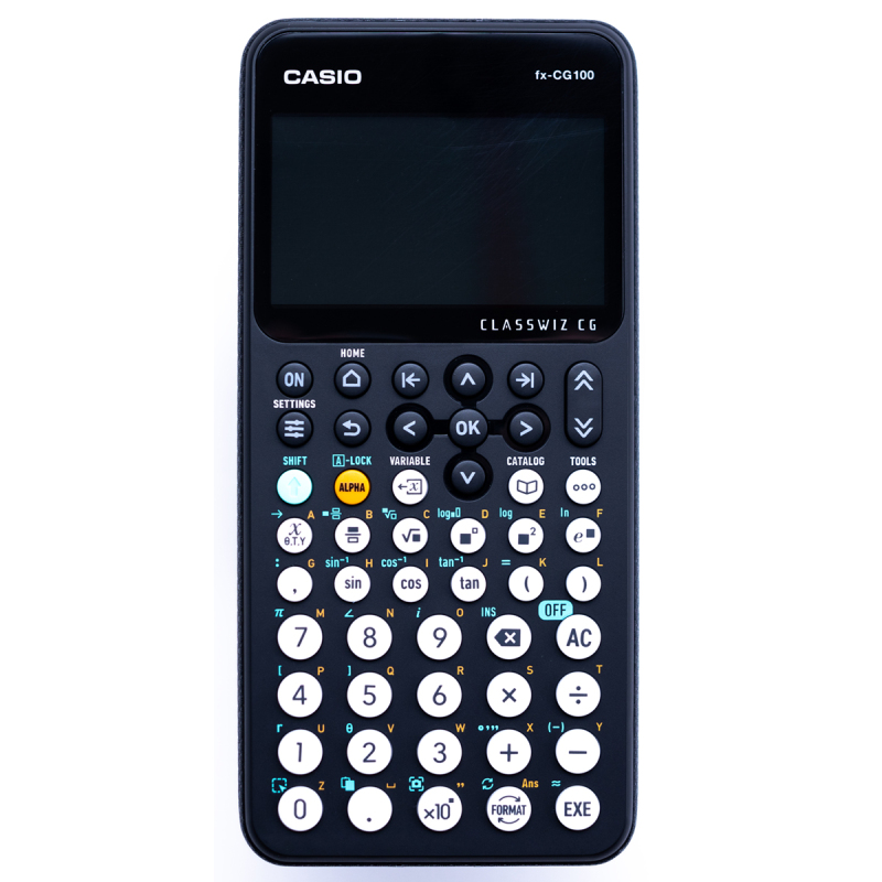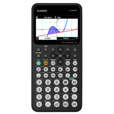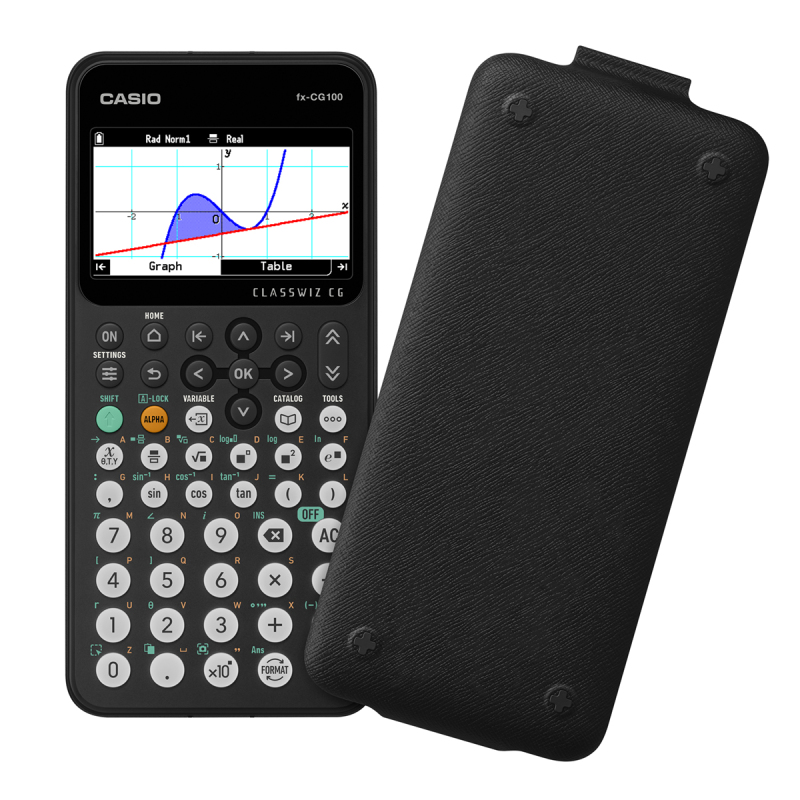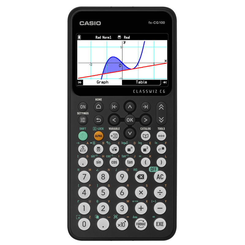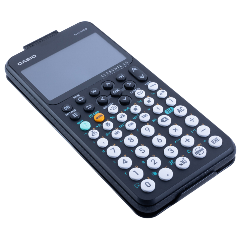 The fx-CG100 is Casio’s latest and most advanced graphic calculator approved for UK exams. The traditional function key layout has been replaced with a clear, tab-based design, resulting in an intuitive, high-contrast user interface that improves navigation.The high-resolution colour display has a natural representation that allows fractions, square roots and other numerical expressions to appear the same way as they do in textbooks. The large display, powerful processor and wide range of built-in functions make this calculator ideal for teaching and learning.