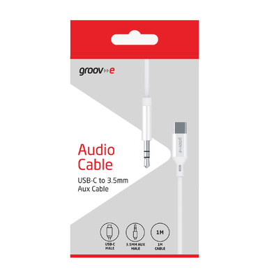 Groov-e GVMA083WE, Audio Adapter USB-C to 3.5mm Male AUX Cable 1M - White