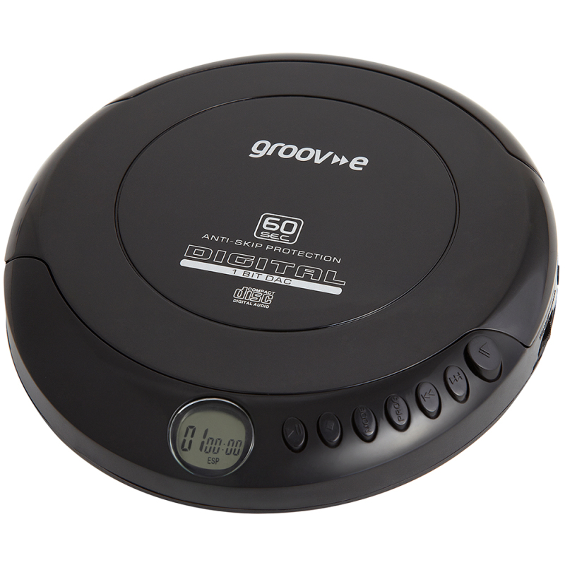 The Groov-e Personal CD Player supports CD, CD-R and CD/RW playback and requires 2x AA batteries or 4.5V DC power input (not included).