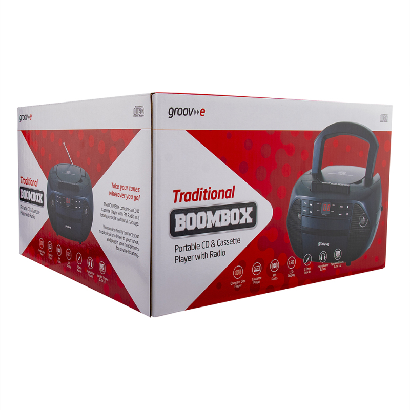 Blast your old mix tapes or CD collection with the groov-e Traditional Boombox and you'll be dancing in no time! For those who want the latest music simply connect your phone or tune into your favourite radio station.
