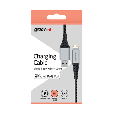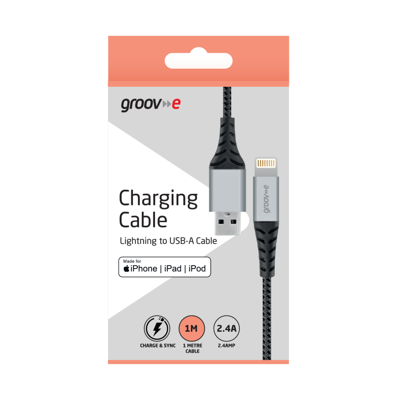 Groov-e GVMA043SG, MFI Lightning to USB-A Charging Cable 1M Braided - Space Grey