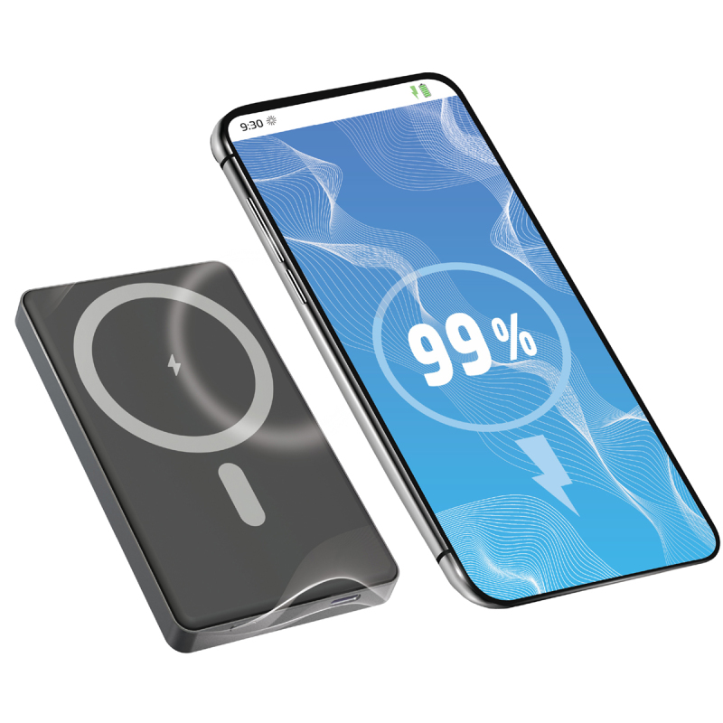 Power Bank 10,000mAh Portable Magnetic Wireless Charger - Silver