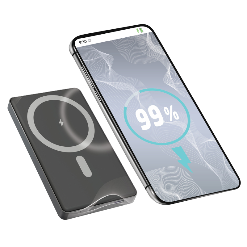 Power Bank 5,000mAh Portable Magnetic Wireless Charger - Silver