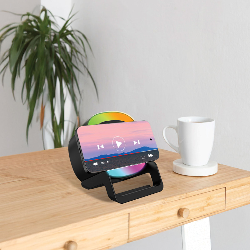 Smartphone Holder with Wireless Charging & Bluetooth Speaker- Black