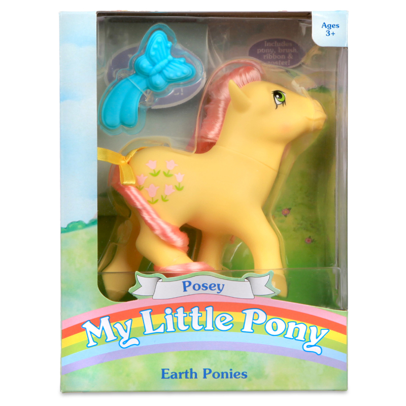 Girls have loved My Little Pony since the 1980s, and now we've recreated Posey, Lickety Split, Cherries Jubilee & Tootsie! With long, shiny hair that you can brush, braid, and style, they look and feel just like you remember and are the perfect gift for kids or adult collectors. Each pony includes a brush, ribbon, mini collector poster, and has a different glitter cutie mark. You can collect all four!