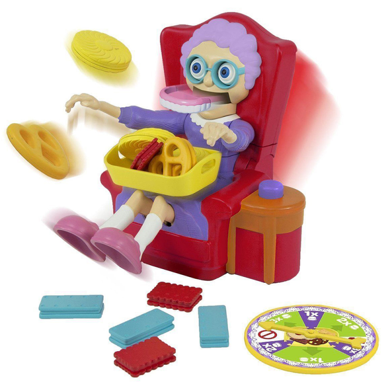Granny loves biscuits! So much so that she’s fallen asleep with a whole tray of them on her lap – what a Greedy Granny! Your mission is to take a biscuit of each type from Granny’s tray as carefully and quietly as you can. One wrong move will wake her and send her teeth flying! Greedy Granny is a new and mischievous game from TOMY. Perfect for all the family, Greedy Granny is full of suspense and will have everyone on the edge of their seats. Will you risk it for a biscuit? Or will your move wake Granny? 2-4 players Suitable for 5 years and up Some assembly required No batteries needed