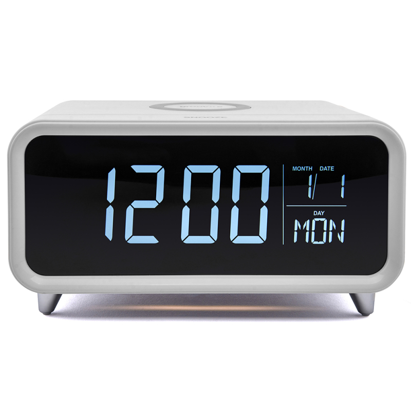 Groov-e GVWC01WE, Athena Alarm Clock with Wireless Charging Pad & Night Light - White