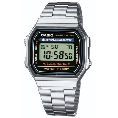 Casio A168WA-1YES, Classic Digital Watch - Silver with Black Case