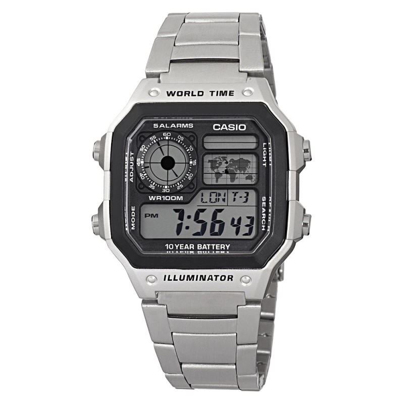 Casio AE-1200WHD-1AVEF, World Time LCD Watch - Stainless Steel Bracelet