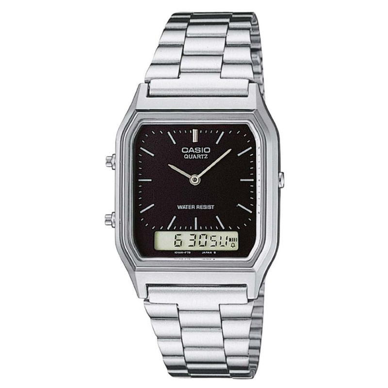 Casio AQ-230A-1DMQYES, Mens Classic Combi Watch - Silver with Black Dial