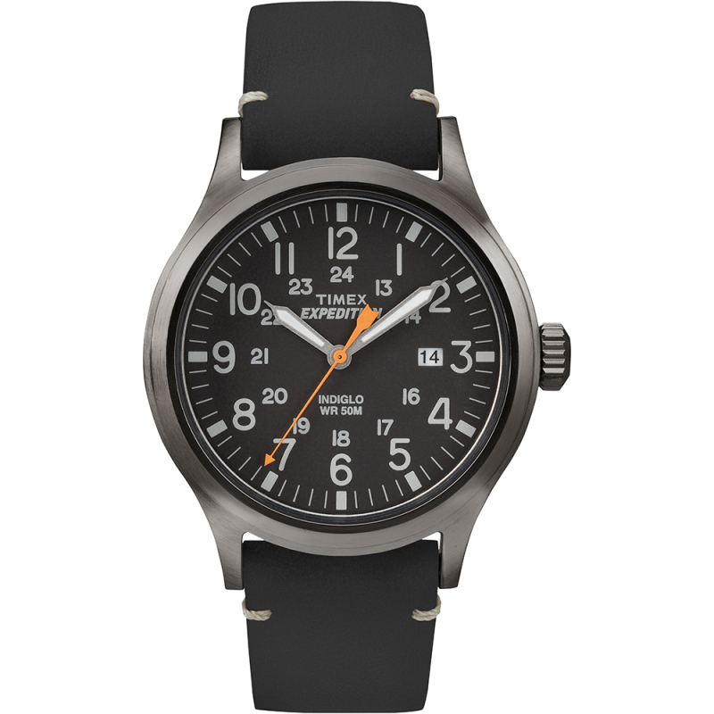 Timex TW4B01900, Expedition Scout Watch with Black Leather Strap & Black Dial